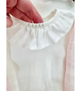 Conjunto blusa y ranita hilo Color blanco rosa bebé
